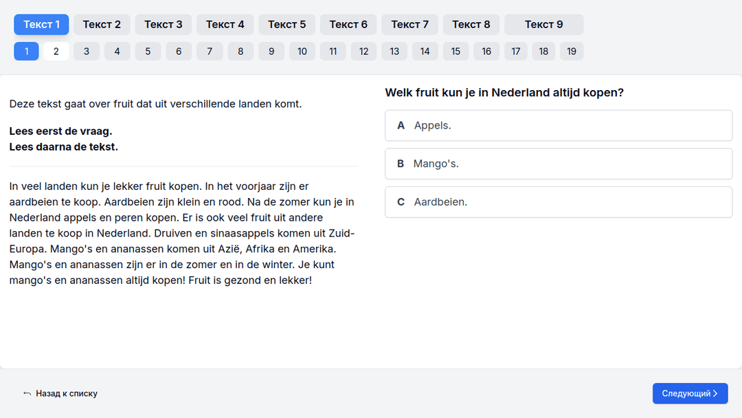 Отточите навыки чтения с помощью продвинутых заданий Lezen, разработанных для быстрого прогресса.